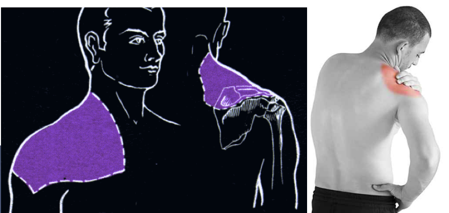 Il vaudrait donc mieux revoir le schéma des douleurs projetées afin d’évaluer si vos douleurs se situent dans ce territoire. Remarquez bien que plus la bursite est importante, plus la douleur descendra vers le pouce.