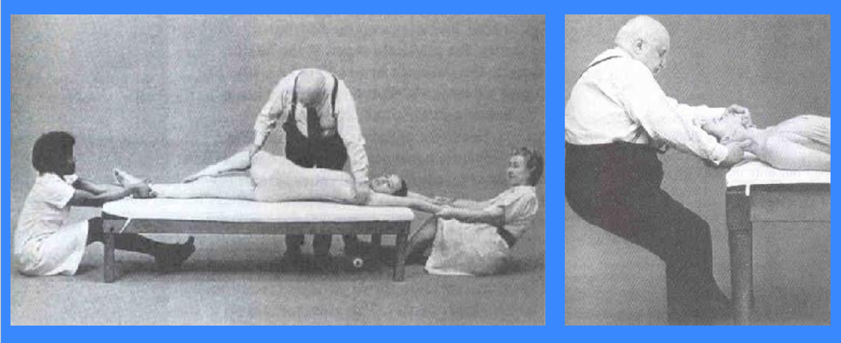 Avant, la médecine ne pouvait répondre à cette question que dans quelques cas comme les douleurs liées à la tuberculose, à l’arthrose de hanche et d’autres pathologies qui pouvaient être soulagées par la chirurgie dite « orthopédique » (« ortho » = droit). Les autres douleurs étaient prises en charge comme depuis la nuit des temps par le massage, la chaleur, les étirements et, parfois, par les tractions.