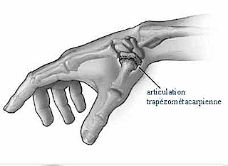 Mais j’ai vu ces « surhommes », ou leurs adeptes, incapables de palper l’articulation entre le 1° méta et le trapèze (à la base du pouce) qui mesure plus ou moins 1 cm cube.