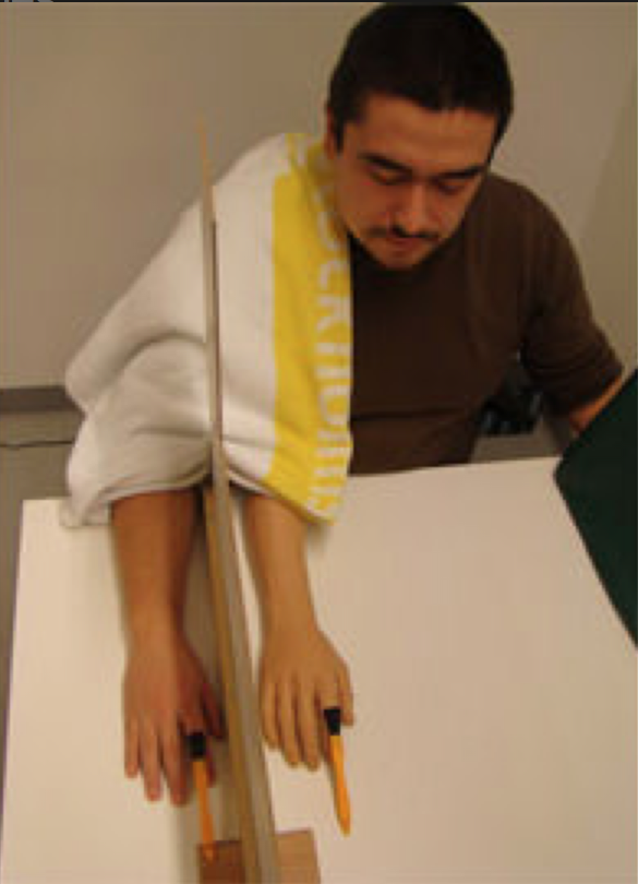 En 1998, la même année où Botvinick et Cohen publiaient leurs résultats dans la revue Nature, un chercheur de l’université de Californie à San Diego, Ramachandran, publiait avec ses collaborateurs d’autres résultats préliminaires encore plus étranges. Ils avaient réalisé le même type d’expérience, mais au lieu de caresser en même temps, au même rythme la main d’une personne qui ne pouvait voir sa main et une main en caoutchouc, ils avaient caressé en même temps la main d’une personne qui ne pouvait voir sa main et une table. Et la personne avait eu l’illusion que la table lui renvoyait des sensations tactiles, que la surface de la table faisait partie de son corps. Lorsque la main de caoutchouc (ou la table) est menacée, lorsque le chercheur fait semblant de frapper la fausse main ou la table, la personne commence à transpirer, tressaille ou retire brusquement sa main –sa véritable main- qui lui est invisible, disant ressentir une impression de danger, de douleur à venir, comme si le coup porté à la main de caoutchouc ou à la table allait faire souffrir la personne.